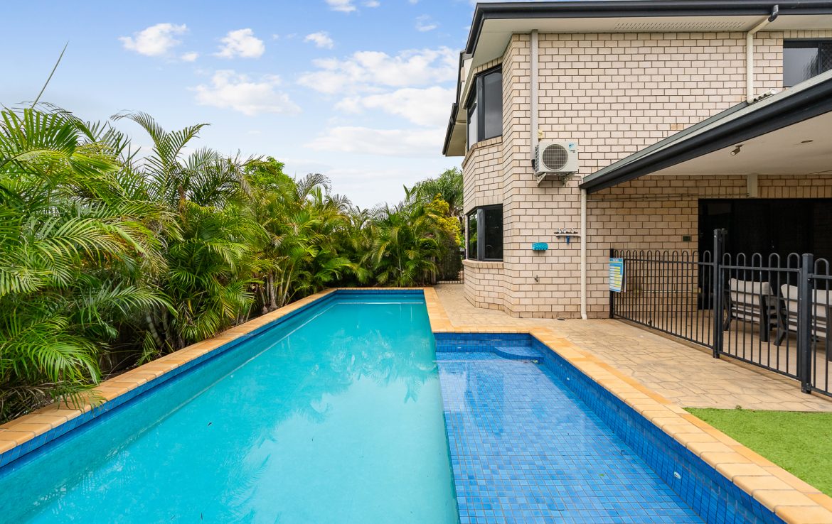 Outside, a covered alfresco space overlooks the sparkling 11-metre swimming pool and fully fenced yard, creating a private sanctuary for summer entertaining, family enjoyment and relaxed weekends at home.