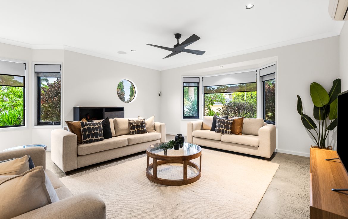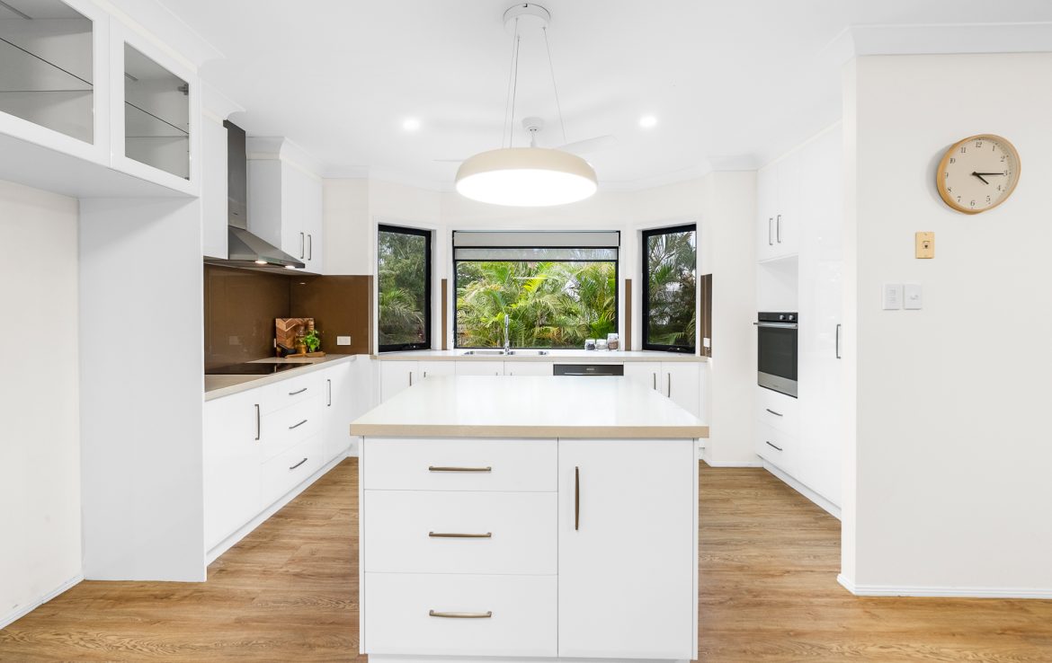 The kitchen is both elegant and functional, offering quality appliances, generous stone bench space and a layout that connects seamlessly to the outdoor entertaining area. Whether hosting intimate dinners or larger gatherings, the home’s indoor-outdoor flow is designed to make entertaining feel effortless.